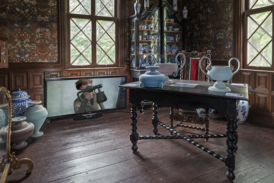 The Castle Keukenhof is located on the charming Keukenhof estate opposite from the famous tulip exhibition with the same name. In collaboration with contemporary artists and designers, the exhibition FLOWERCASTLE offers a platform for reflection on work inspired by craftsmanship and cultural heritage. The series Between Two Rivers is presented in the Porcelain Salon